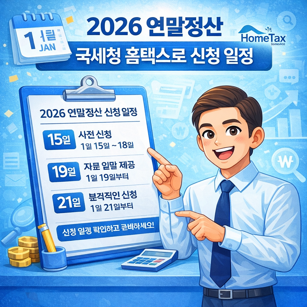 2026 연말정산의 핵심은 복잡하지 않습니다. 1월 15일 연말정산간소화 서비스가 개통되면 즉시 자료를 확인하고, 1월 중순부터 하순 사이에 누락 항목과 부양가족, 추가 증빙을 정리하는 것이 중요합니다. 2026 연말정산 홈택스를 충분히 활용하면 환급 가능성을 높이고 이후 수정 부담도 크게 줄일 수 있습니다.